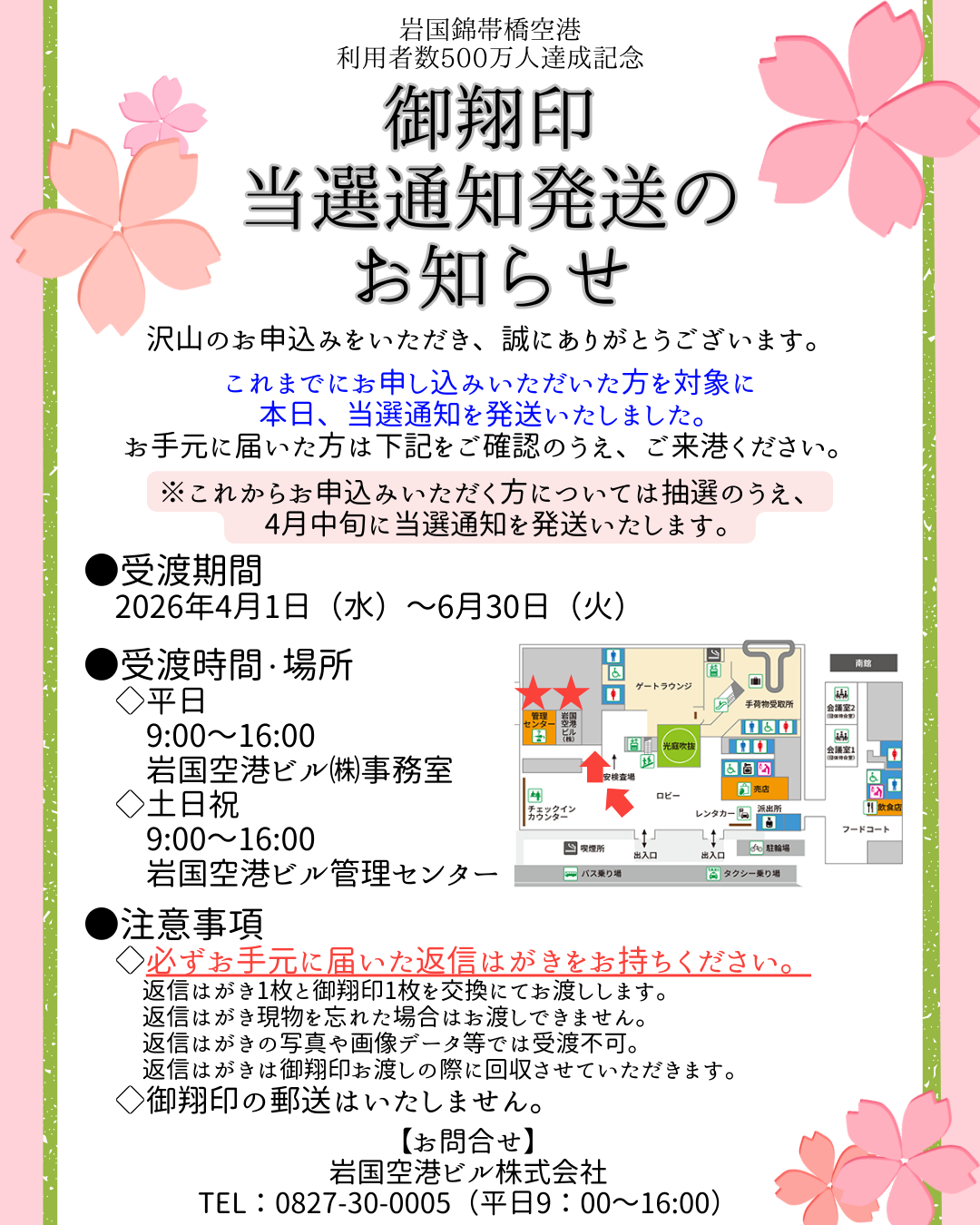お手元に届いた方は、注意事項をご確認の上ご来港ください。